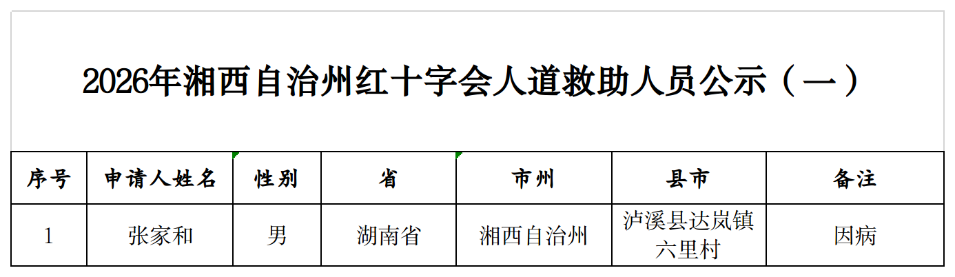 -2026年湘西自治州红十字会人道救助人员公示(一)