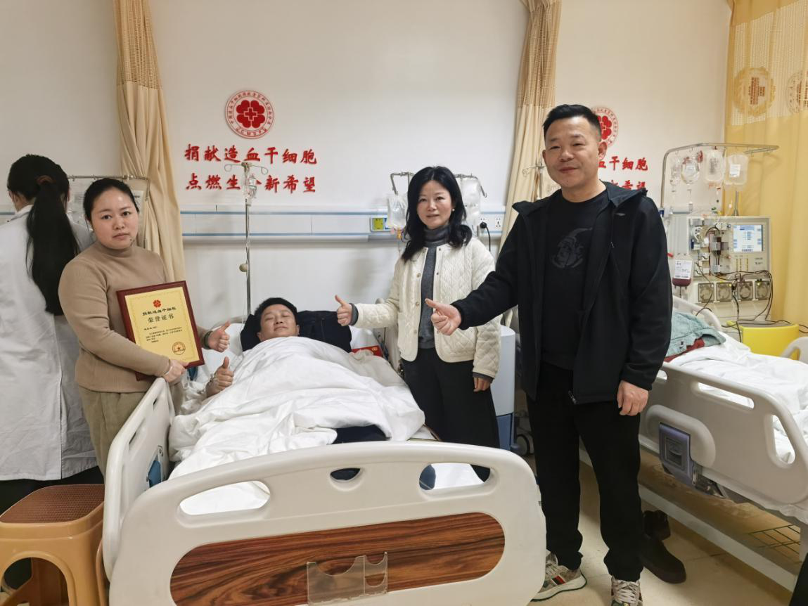 2月4日,湘西自治州红十字会党组成员、副会长张兰一行来到湘雅医院,专程看望慰问无偿捐献造血干细胞志愿者杨正龙,向这位用爱心为生命续航的平凡英雄表达最诚挚的祝福和敬意。